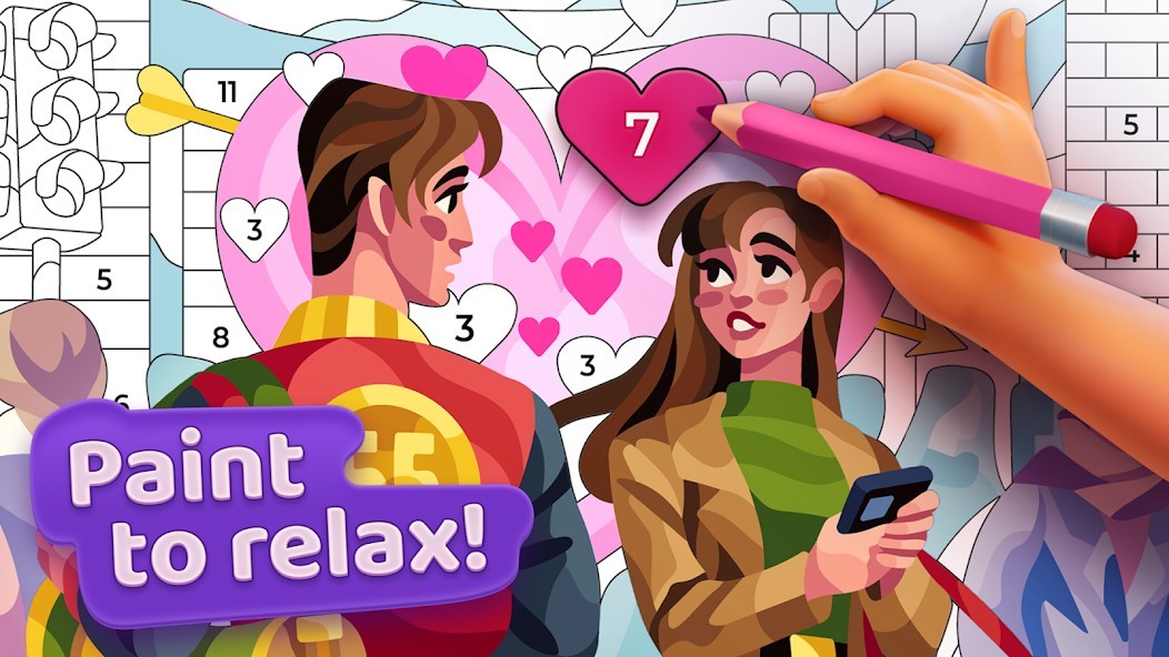 Join them in an amazing adventure: color hundreds of highly detailed and custom-painted pictures, renovate an old house and fill it with life and fancy decorations, restore an abandoned Art Gallery just across the street and dive into a lively story of this adorable couple! Draw, renovate, decorate, follow the story and note: this is the first coloring book game where you can paint by number and enjoy home design and decorating at the same time!