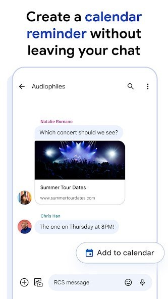 Messages by Google is the official Google app for messaging over Rich Communication Services (RCS) with fallback to SMS/MMS.