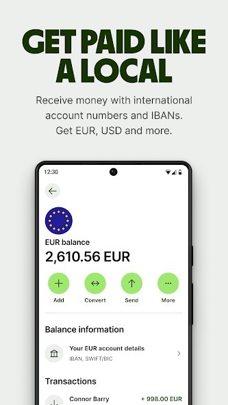 - Use them to get paid or have direct debits in multiple currencies, without the extra fees